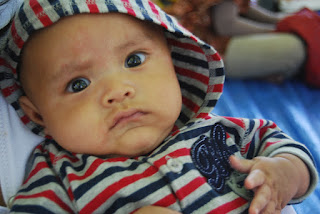 My baby brother Aliy is very active baby. He likes to roll on the bed. He always wanted to play, he always babbling, and yell and scream. But I still like him because he is so cute even though he's noisy.
